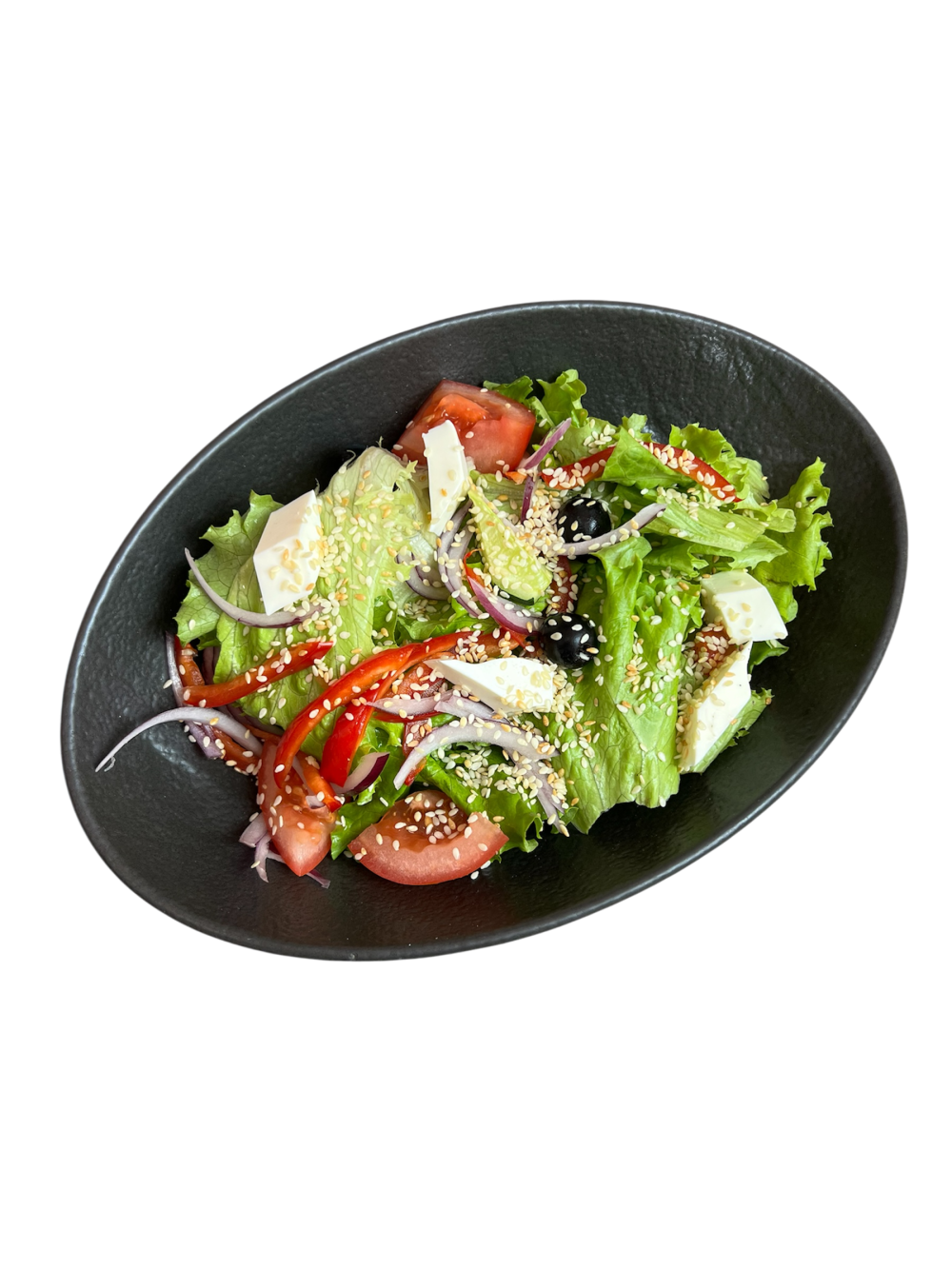 Свежие овощи, фета и оливковое масло — лёгко и вкусно.