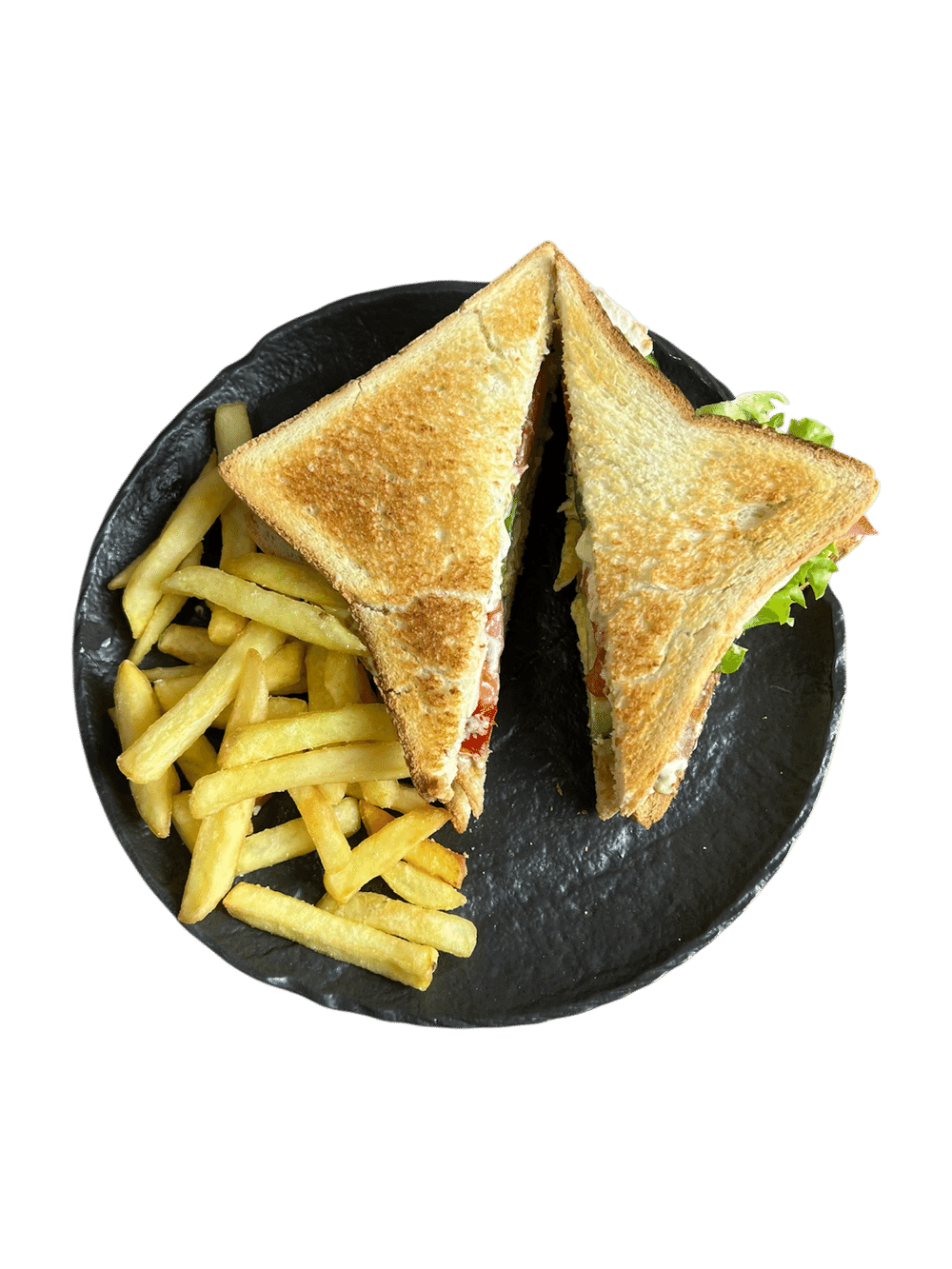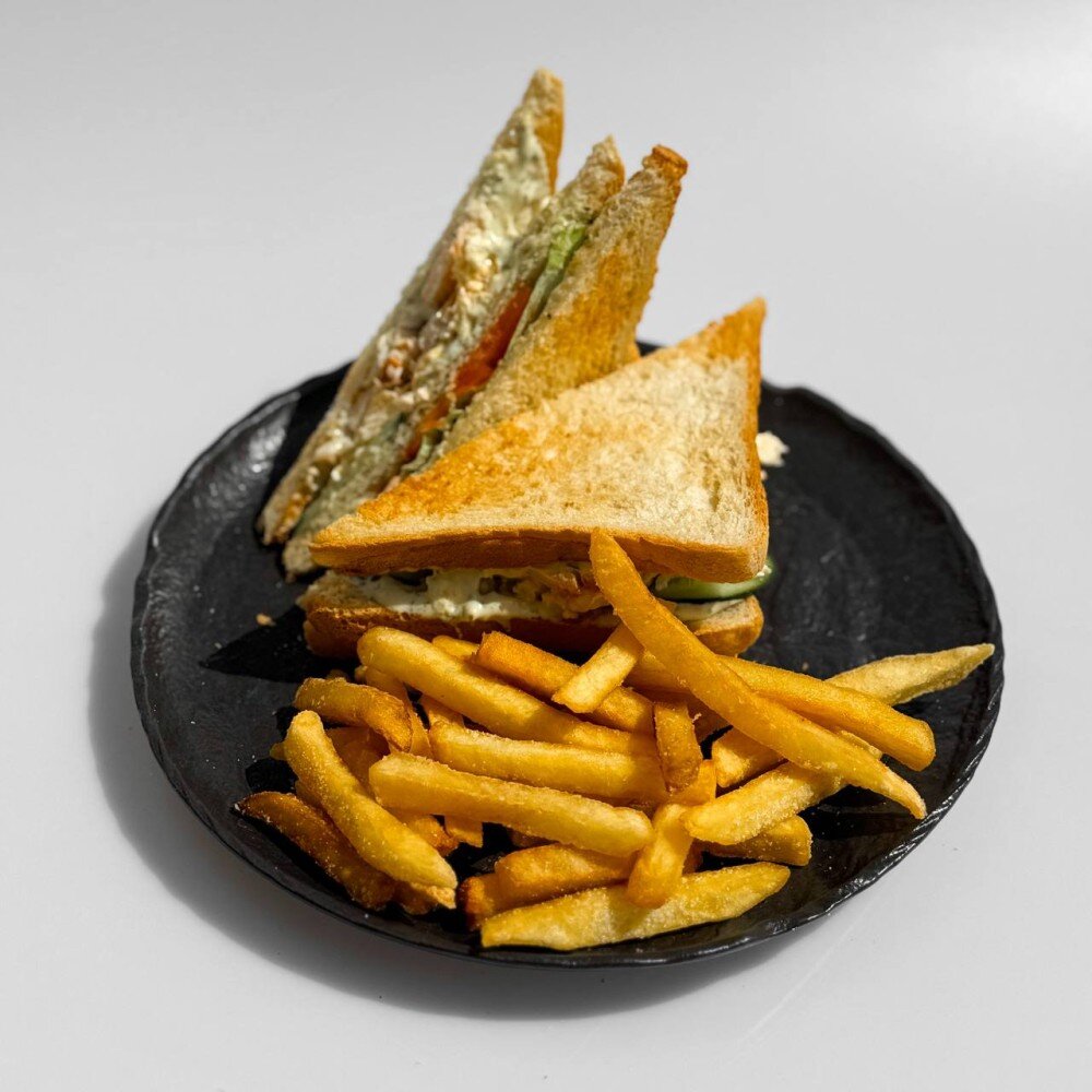 Тосты,огурцы,помидоры,лист салата,яичный омлет, соус на выбор(классический,цезарь)